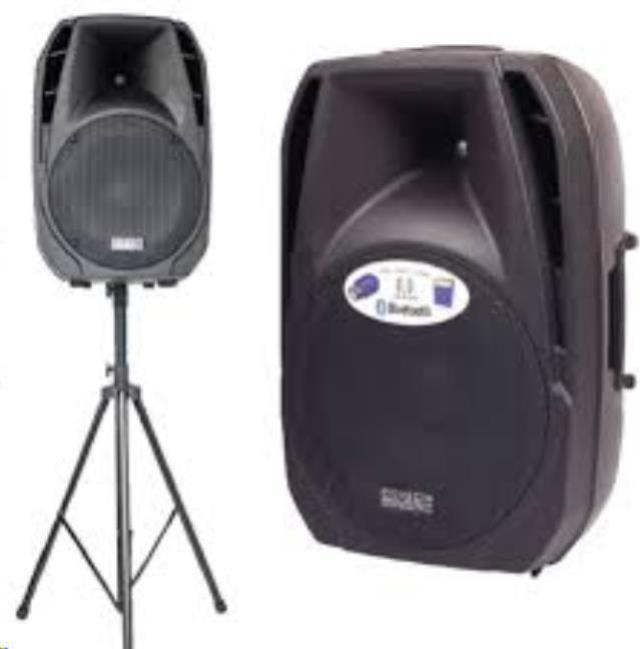 The Bluetooth Capable M2000 Multi-Function Speaker great for parties and gatherings. Tripod speaker stand to elevate the speaker to enhance sound and further projection. The Speaker is equipped with luggage wheels for easy travel. Multiple connections to hook up an alternative music source (CD Player or Record Player). The USB Input for USB Thumb Drives filled with MP3s. At 2,000 Watt Peak and 600 RMS this speaker is able to be heard through-out the block.